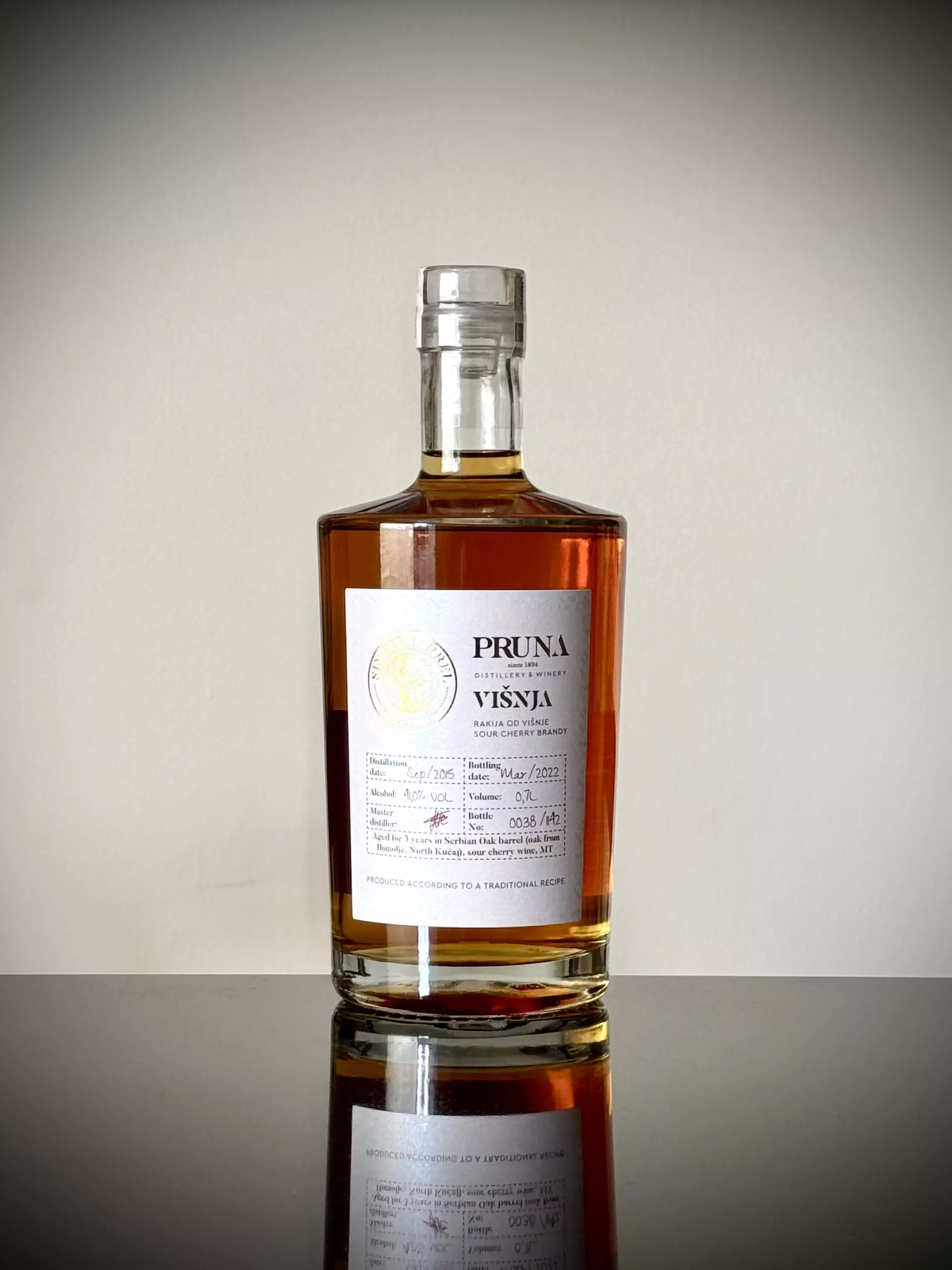 Početna / Rakije / Single Barrel rakija od višnje – srpski hrast 0,7L Single Barrel rakija od višnje – srpski hrast 0,7L5,400.00CHF Single Barrel rakija od višnje - srpski hrast 0,7L količina Dodaj u korpu Kategorije: Rakije, Single barrel rakije Product ID: 2720 Opis Dodatne informacije Opis Rakija od višnje koja je sazrevala 3 godine u buretu od srpskog hrasta u kom je sazrevalo vino od višnje 2 godine. Dodatne informacije Težina 1.570 kg Dimenzije 9.7 × 9.7 × 22.8 cm Alkohol 41% Zapremina 0.7L Povezani proizvodi Reserva rakija od tamjanike 0,7L 3,720.00CHF Dodaj u korpuPogledaj Single Barrel rakija od jabuke – srpski hrast 0,7L 6,000.00CHF Dodaj u korpuPogledaj Reserva rakija od dunje 0,7L 5,400.00CHF Dodaj u korpuPogledaj